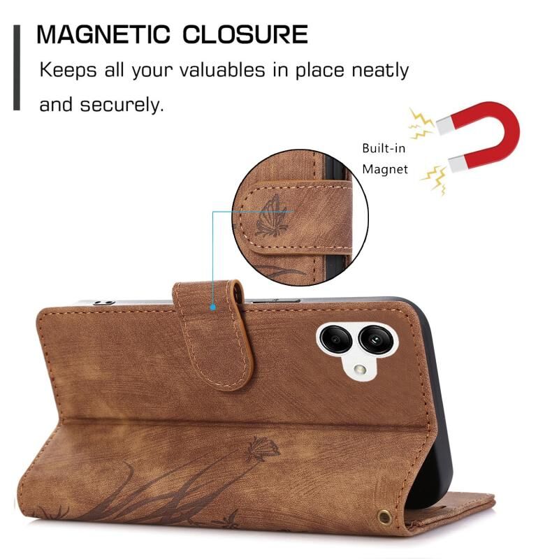 Θήκη τηλεφώνου δερμάτινη ανάγλυφη με σχέδιο ορχιδέας και πεταλούδας για Samsung Galaxy A04e / F04 (Μαύρο)