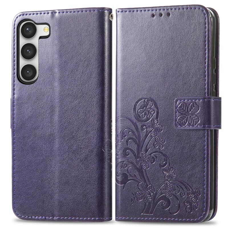 Για Samsung Galaxy A04e Four-leaf κούμπωμα ανάγλυφο πόρπη δερμάτινη θήκη τηλεφώνου (Μωβ)
