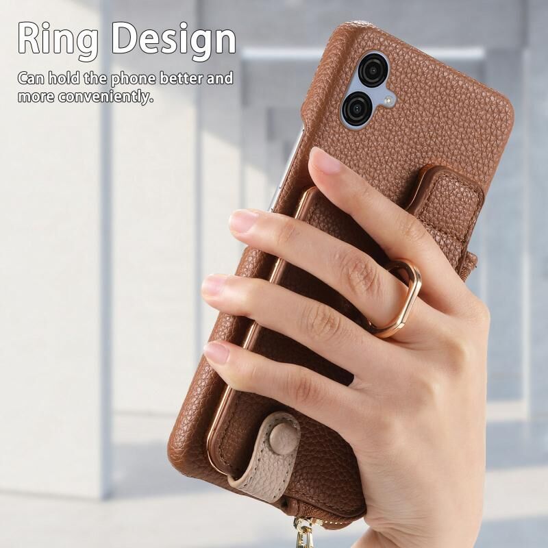 Για Samsung Galaxy A04e Litchi δέρμα λάδι Edge δαχτυλίδι φερμουάρ πορτοφόλι πίσω υπόθεση τηλεφώνου (καφέ)