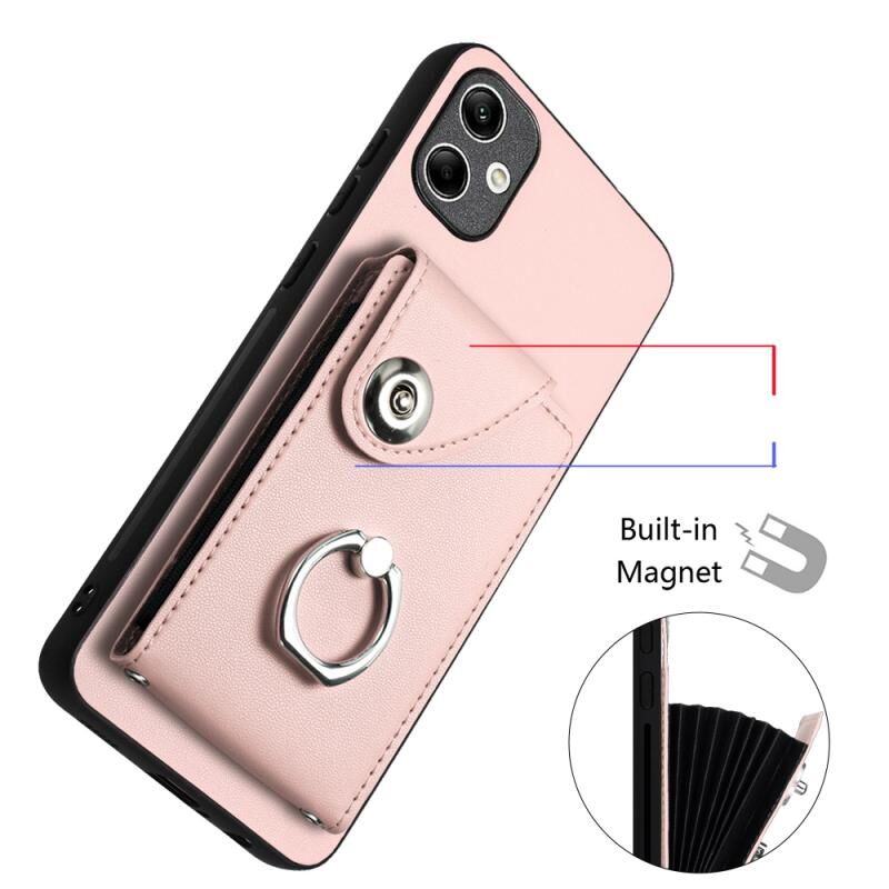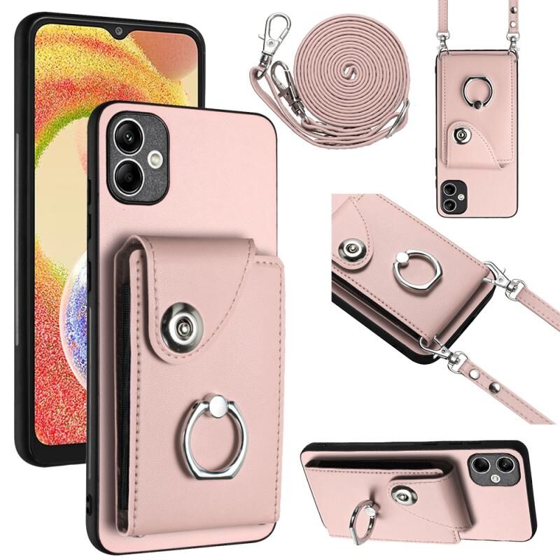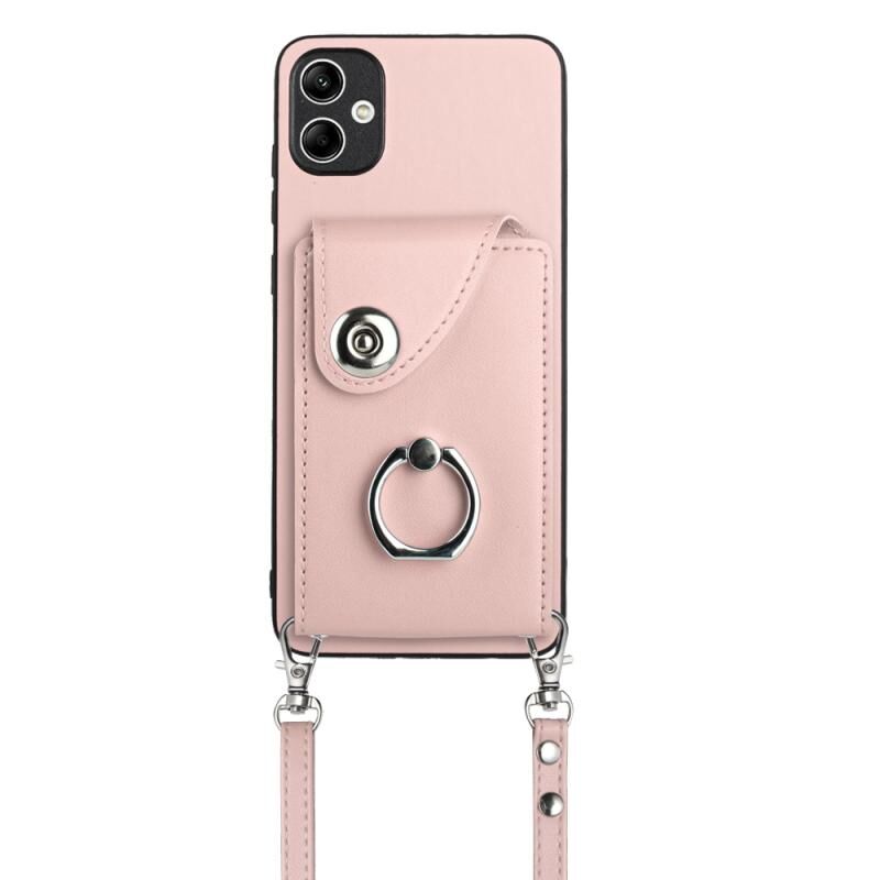 Για Samsung Galaxy A04e/M04/F04 4G Οργανική κάρτα τσάντα τσάντα δαχτυλίδι κάτοχος υπόθεση τηλεφώνου με μακρύ κορδόνι (ροζ)