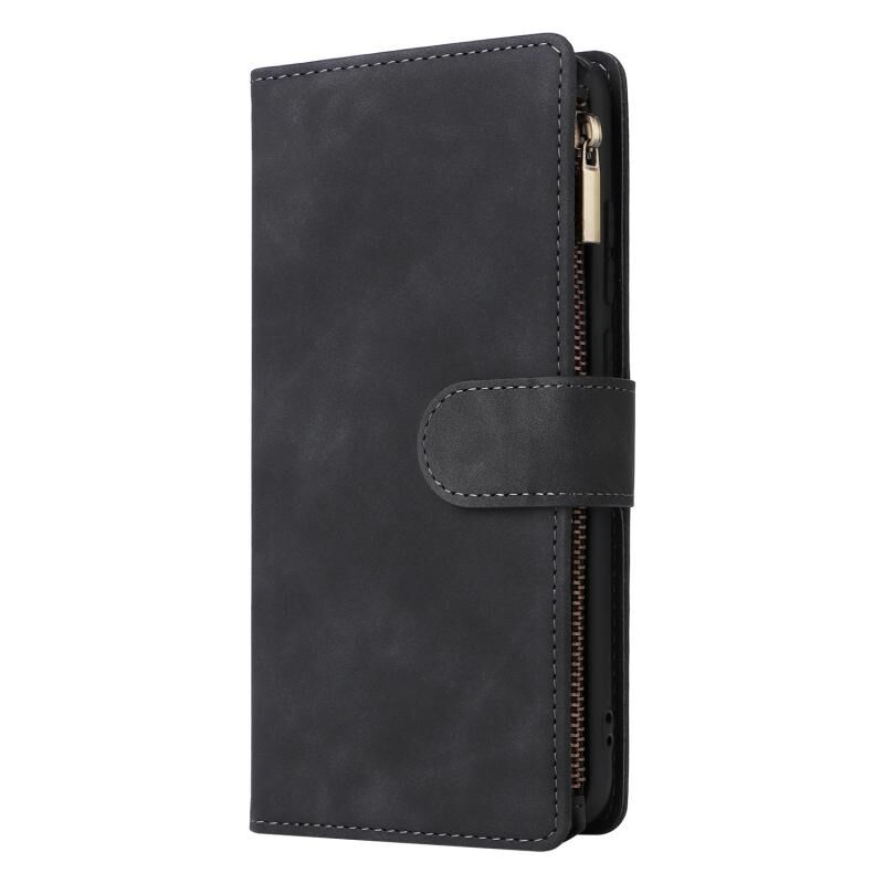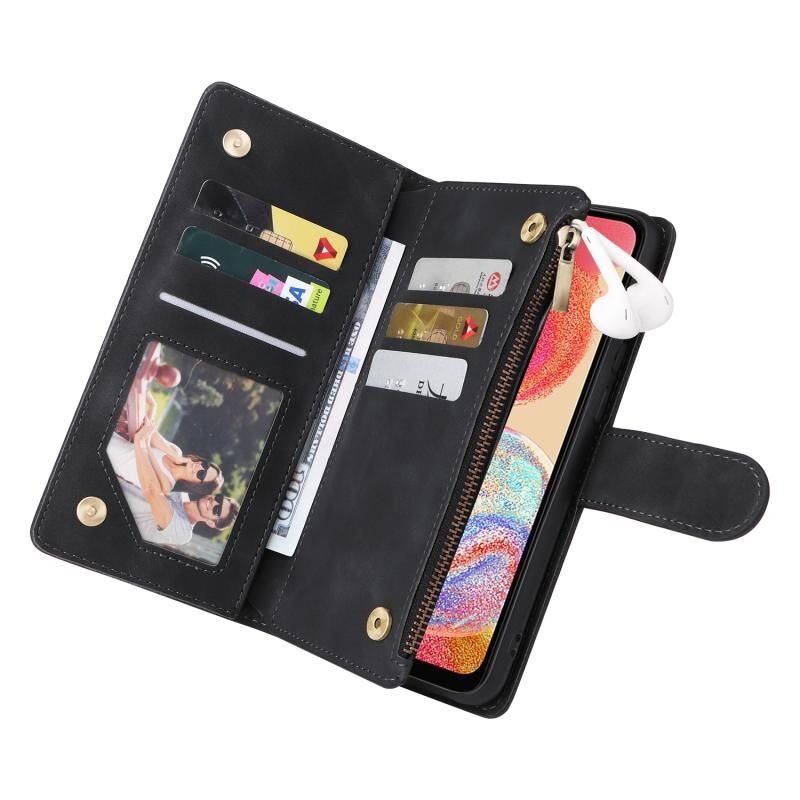 Για Samsung Galaxy A04e Πολυλειτουργικό παγωμένο φερμουάρ πορτοφόλι δερμάτινη θήκη τηλεφώνου (μαύρο)