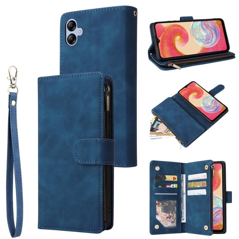 Για Samsung Galaxy A04e Πολυλειτουργικό παγωμένο φερμουάρ πορτοφόλι δερμάτινη θήκη τηλεφώνου (μπλε)
