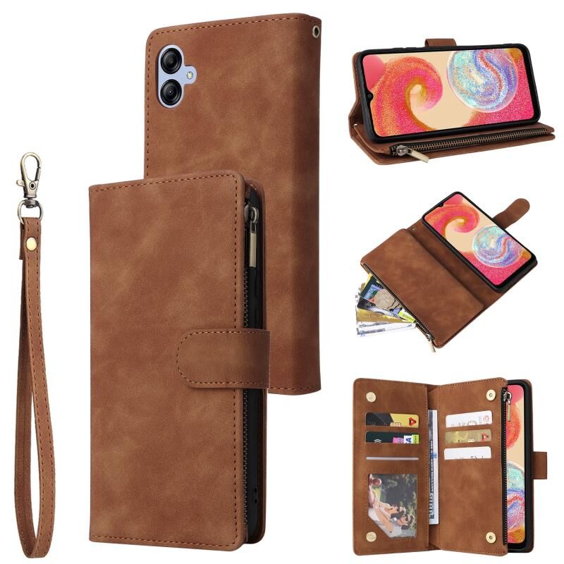 Για Samsung Galaxy A04e Πολυλειτουργικό παγωμένο φερμουάρ πορτοφόλι δερμάτινη θήκη τηλεφώνου (καφέ)
