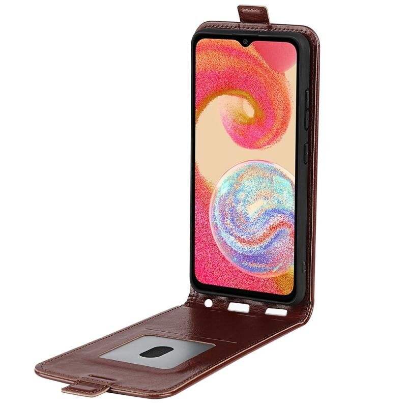 Για Samsung Galaxy A04e R64 Υφή κάθετη Flip δερμάτινη θήκη τηλεφώνου (Καφέ)