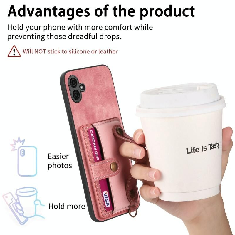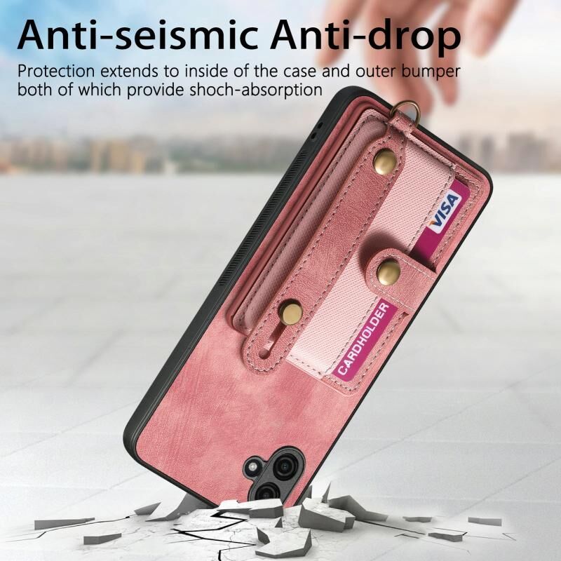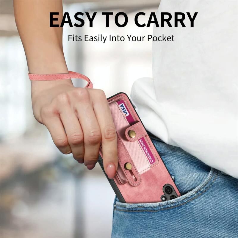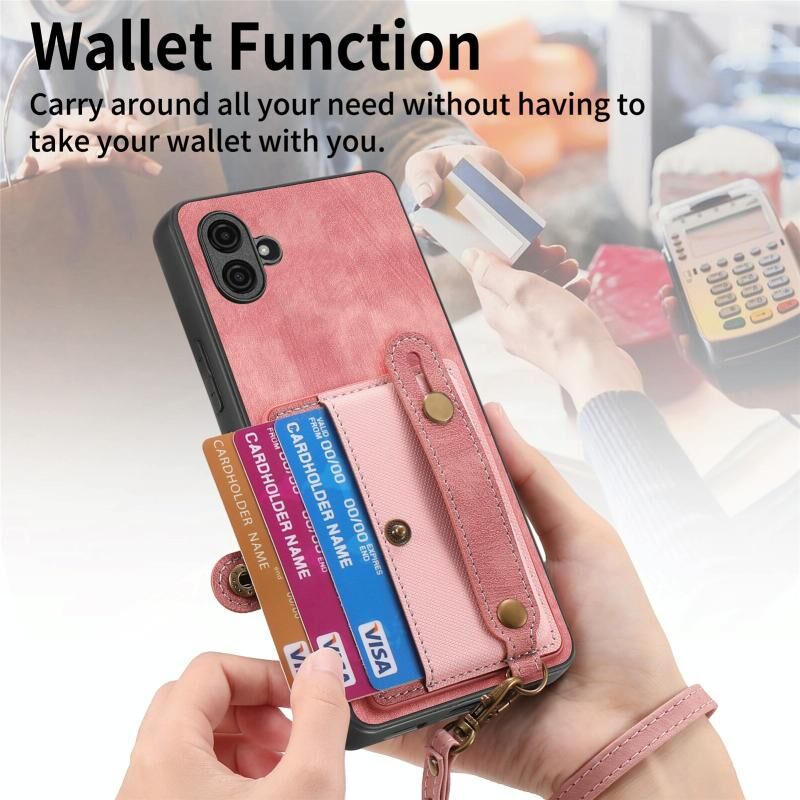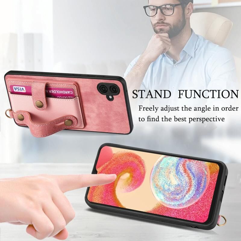 Για Samsung Galaxy A04e Ρετρό σταυρό Wristband πορτοφόλι δέρμα πίσω υπόθεση τηλεφώνου (ρόζ)
