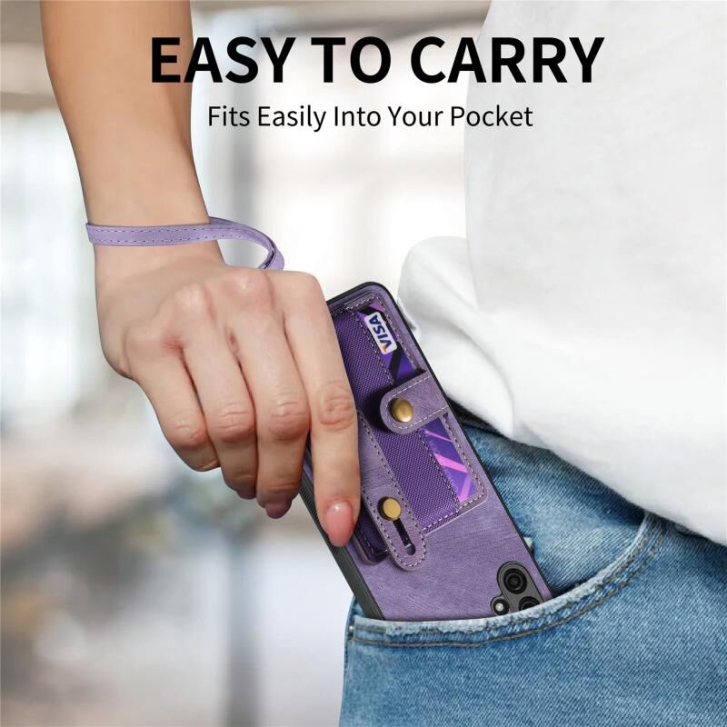 Για Samsung Galaxy A04e Ρετρό σταυρό Wristband πορτοφόλι δέρμα πίσω υπόθεση τηλεφώνου (μωβ)
