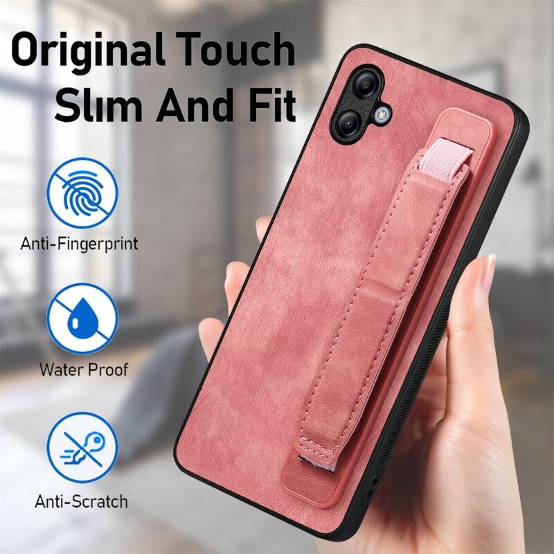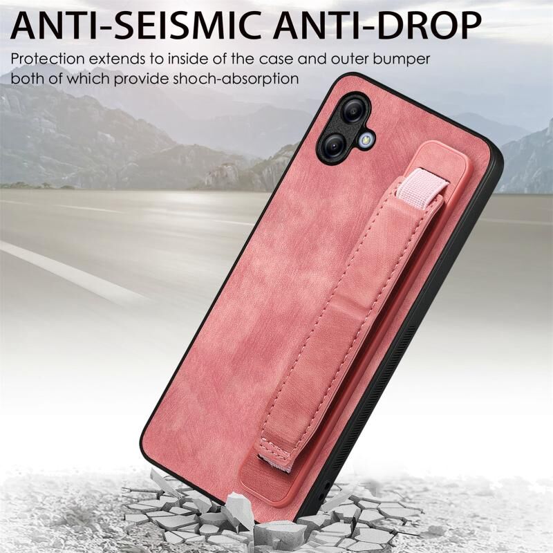 Για Samsung Galaxy A04e Retro Wristband κάτοχος δέρμα πίσω υπόθεση τηλεφώνου (ροζ)