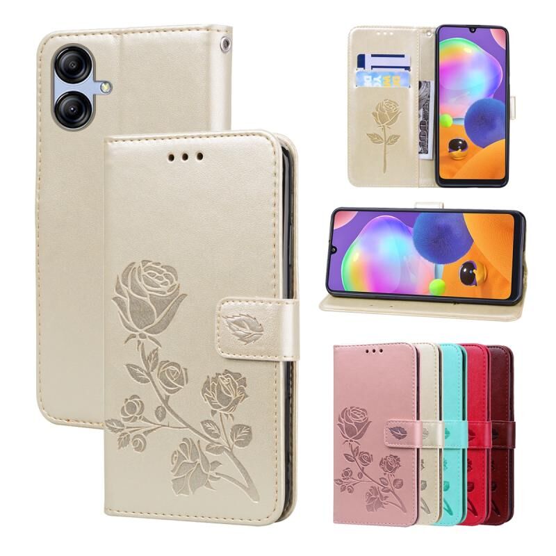 Θήκη κινητού Samsung Galaxy A04E Rose Embossed Flip από Δερματίνη PU (Χρυσός)