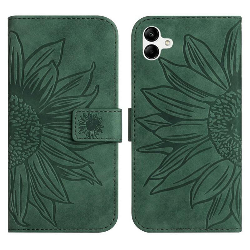Για το Samsung Galaxy A04E δέρμα αίσθηση Sun Flower μοτίβο Flip δέρμα τηλέφωνο υπόθεση με κορδόνι (πράσινο)