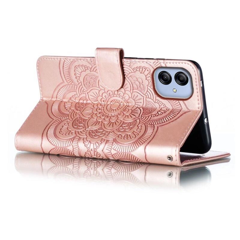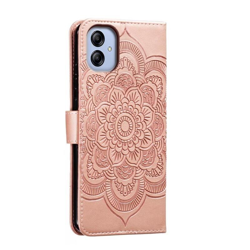 Για Samsung Galaxy A04e Sun Mandala ανάγλυφο μοτίβο τηλέφωνο δερμάτινη θήκη (Ροζ χρυσός)
