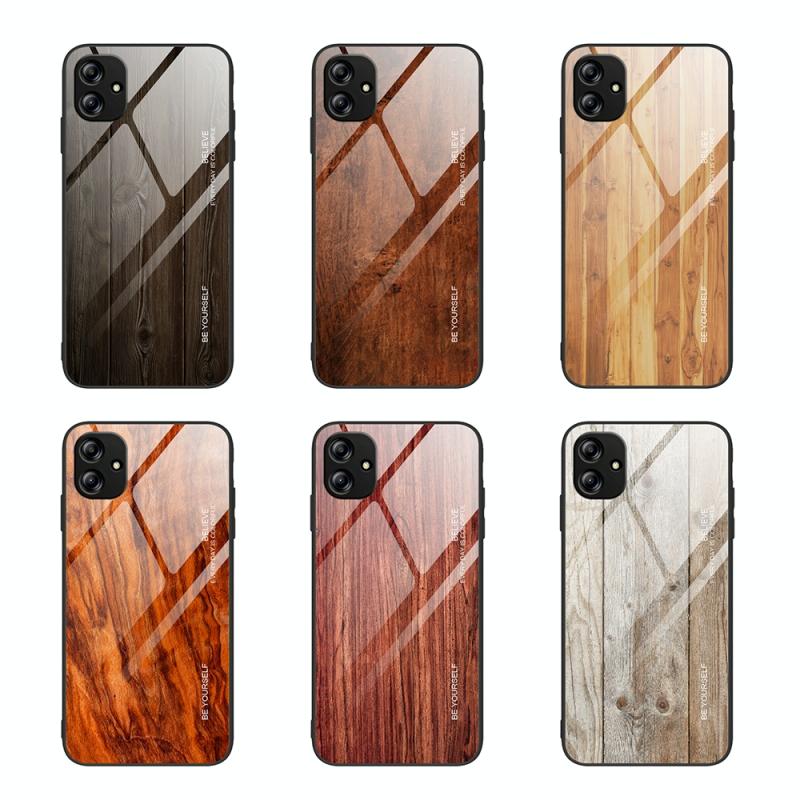 Θήκη τηλεφώνου Samsung Galaxy A04e από γυαλί με σχέδιο ξύλου (Κίτρινο)