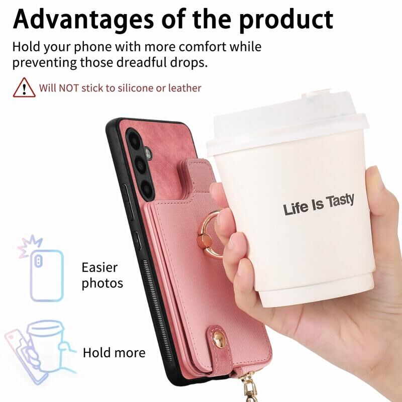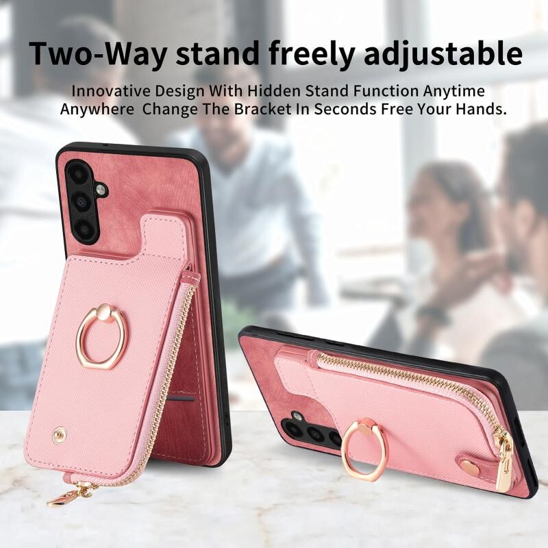 Για Samsung Galaxy A04s Cross Δερμάτινο δαχτυλίδι κάθετη φερμουάρ πορτοφόλι πίσω υπόθεση τηλεφώνου (ροζ)
