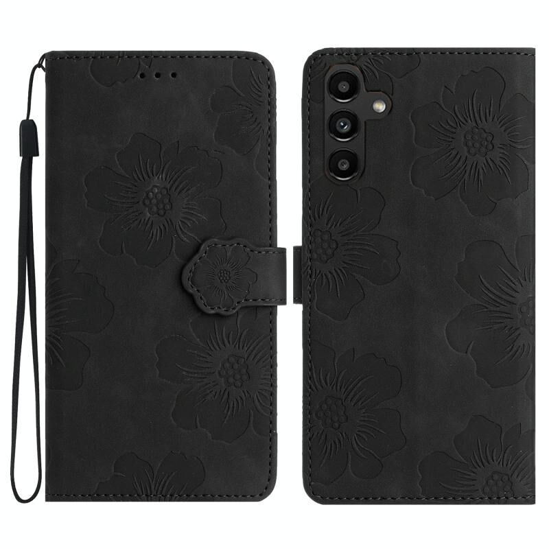 Για Samsung Galaxy A04s λουλούδι ανάγλυφο μοτίβο δερμάτινη θήκη τηλεφώνου (μαύρο)