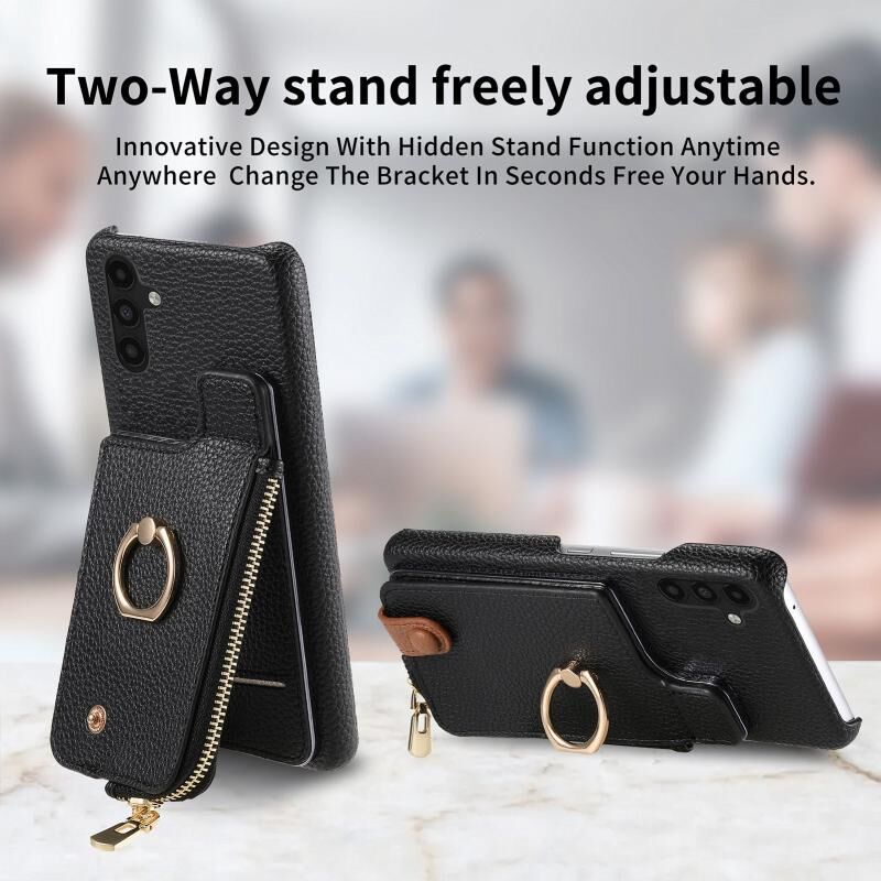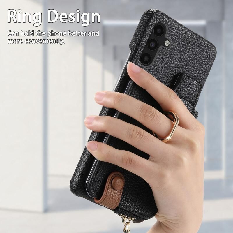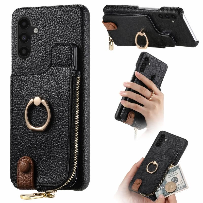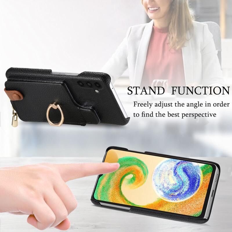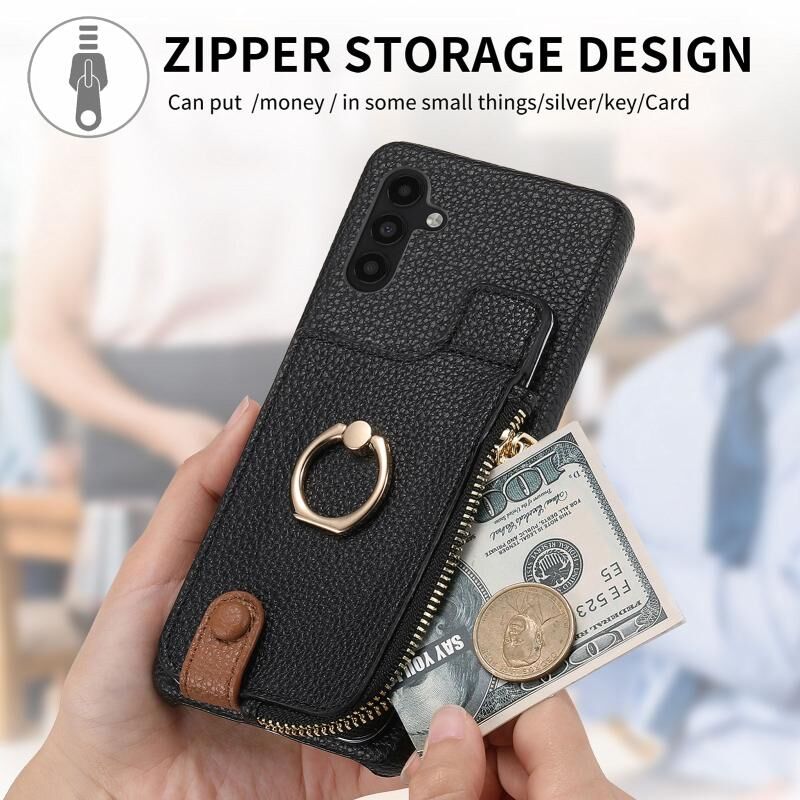 Για Samsung Galaxy A04s Litchi δέρμα λάδι Edge δαχτυλίδι φερμουάρ πορτοφόλι πίσω υπόθεση τηλεφώνου (Μαύρο)