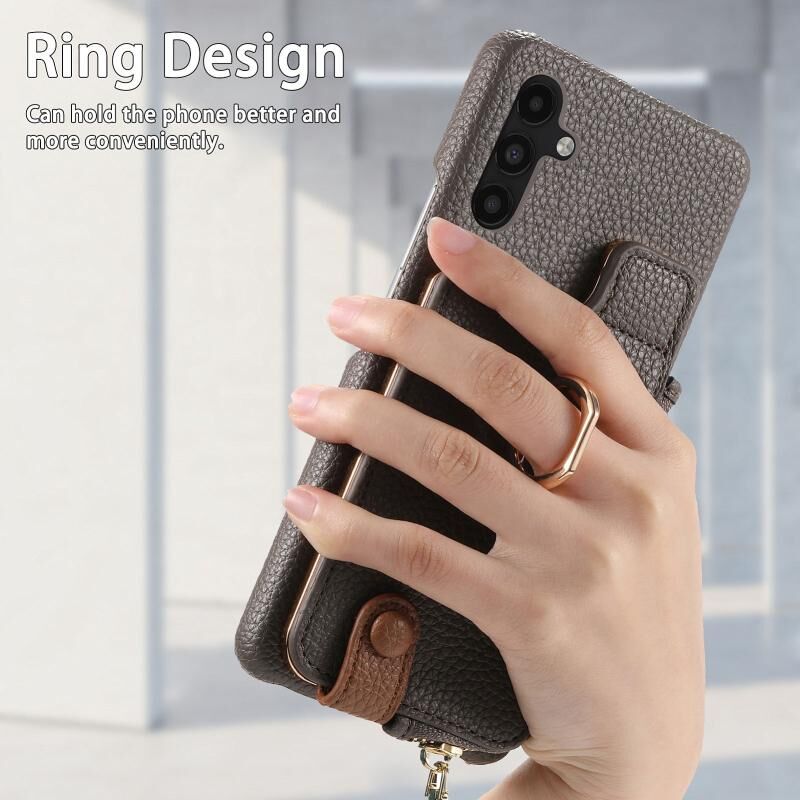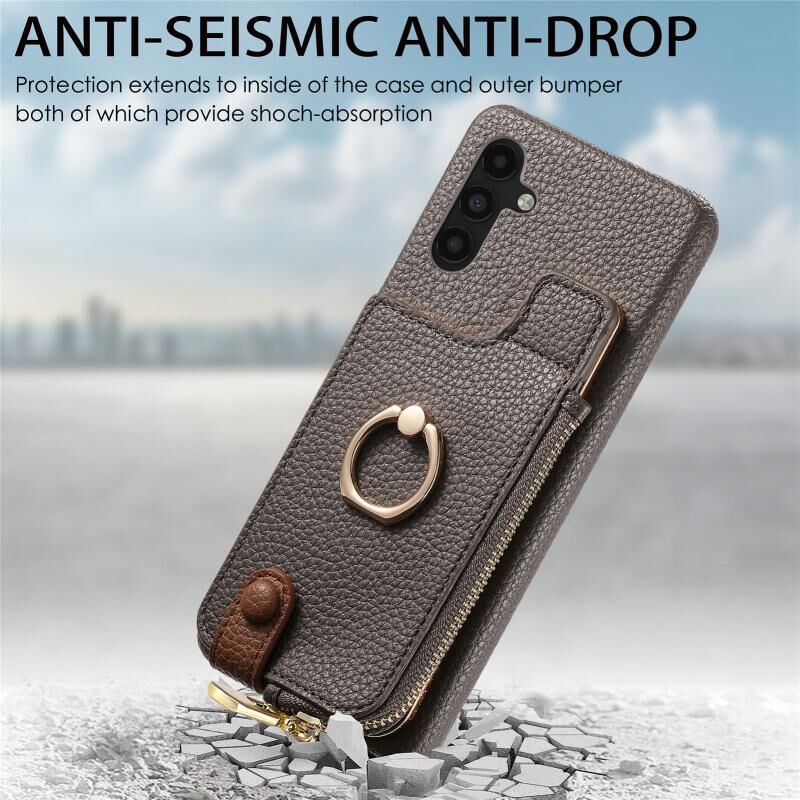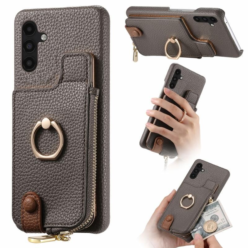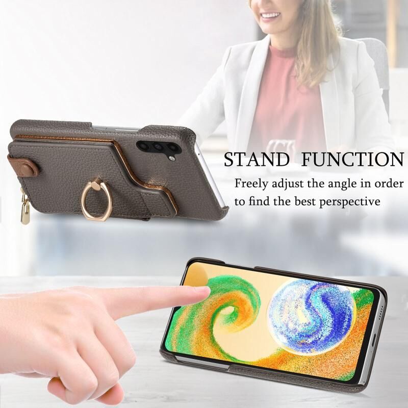Για Samsung Galaxy A04s Litchi δέρμα λάδι Edge δαχτυλίδι φερμουάρ πορτοφόλι πίσω υπόθεση τηλεφώνου (Γκρι)