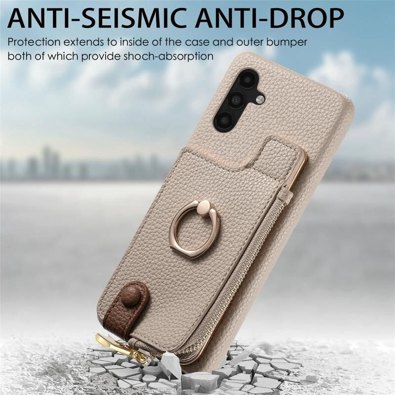 Για Samsung Galaxy A04s Litchi δέρμα λάδι Edge δαχτυλίδι φερμουάρ πορτοφόλι πίσω υπόθεση τηλεφώνου (Λευκό)