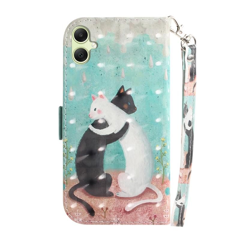 Θήκη τηλεφώνου Samsung Galaxy A05 3D πολύχρωμη οριζόντια δερμάτινη (Μαύρη λευκή γάτα)