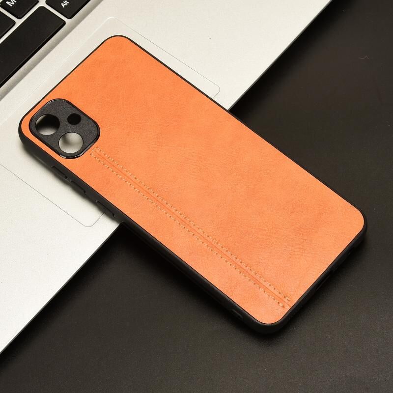 Για Samsung Galaxy A05 4G Αγελάδα μοτίβο ραπτικής πίσω κάλυμμα τηλέφωνο υπόθεση (πορτοκαλί)