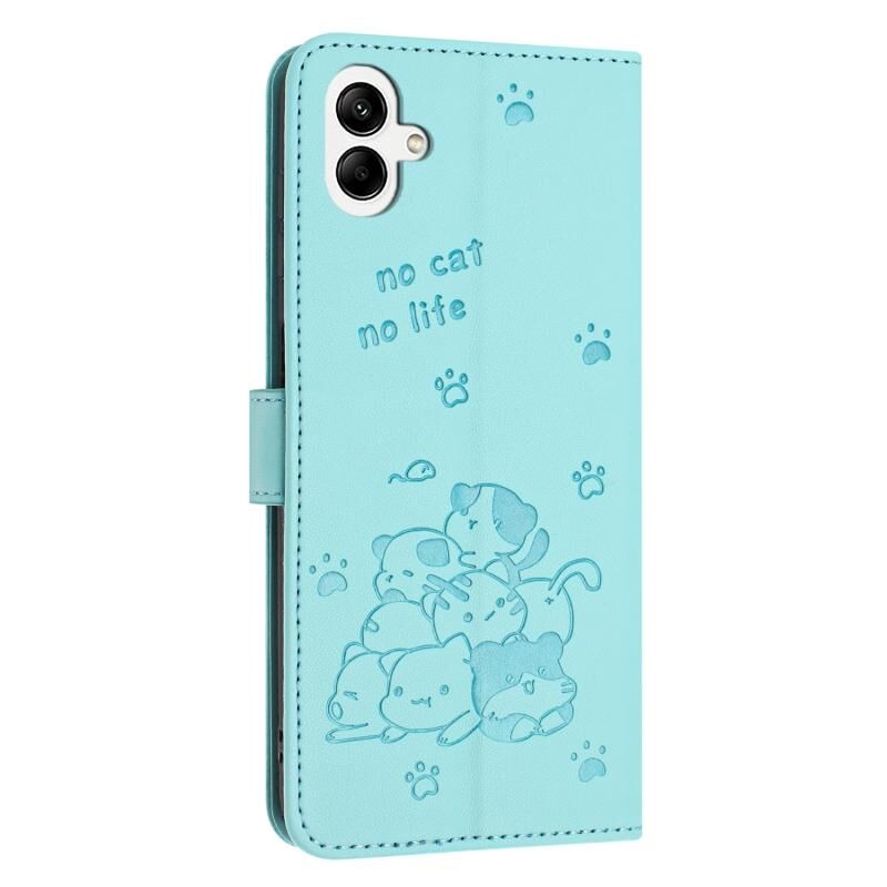 Θήκη δερμάτινη για Samsung Galaxy A05 4G με ανάγλυφο γατάκι και κορδόνι (Μωβ)