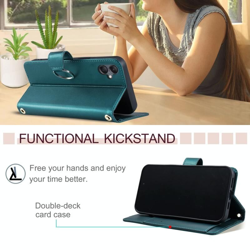Για Samsung Galaxy A05 4G Παγκόσμια δαχτυλίδι πόρπη ρομβοειδής δερμάτινη θήκη τηλεφώνου (πράσινο)