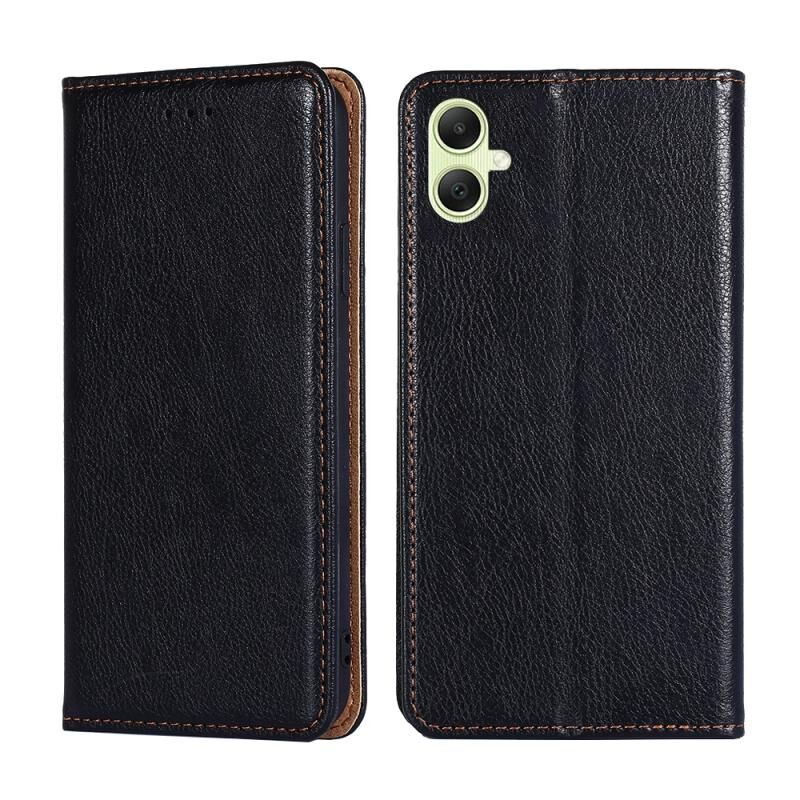 Για Samsung Galaxy A05 4G Gloss Oil Solid Color Μαγνητική δερμάτινη θήκη τηλεφώνου (μαύρο)