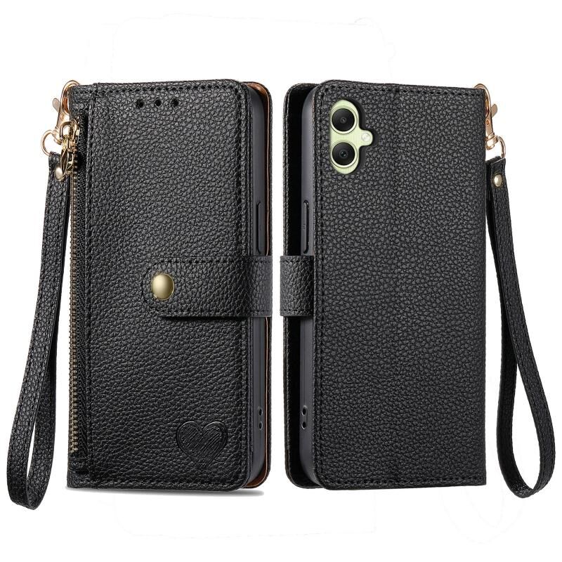 Για Samsung Galaxy A05 4G Αγάπη φερμουάρ Lanyard δερμάτινη θήκη τηλεφώνου (Μαύρο)