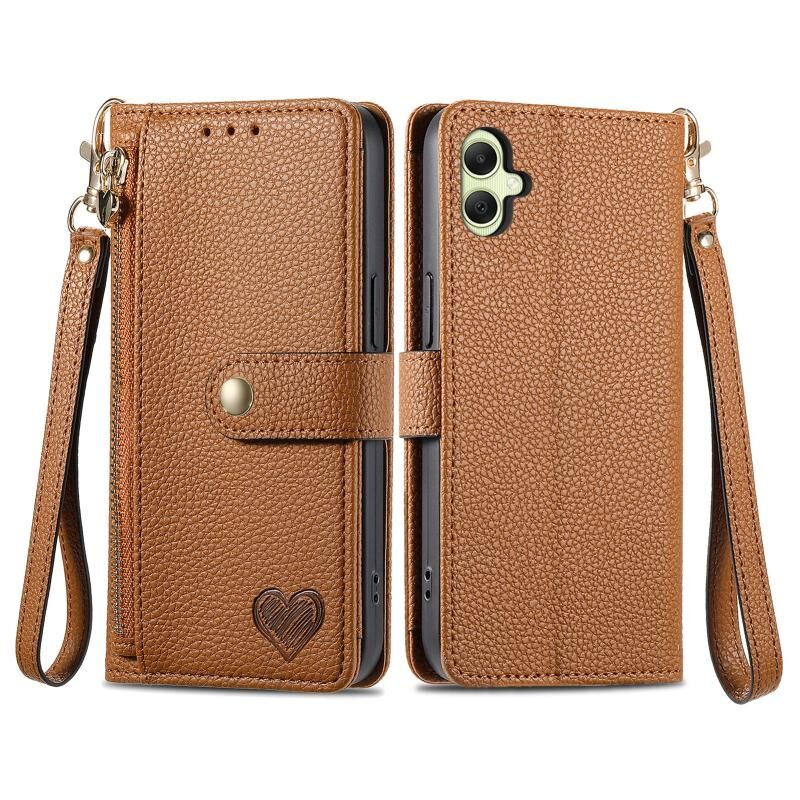 Για Samsung Galaxy A05 4G Αγάπη φερμουάρ Lanyard δερμάτινη θήκη τηλεφώνου (καφέ)