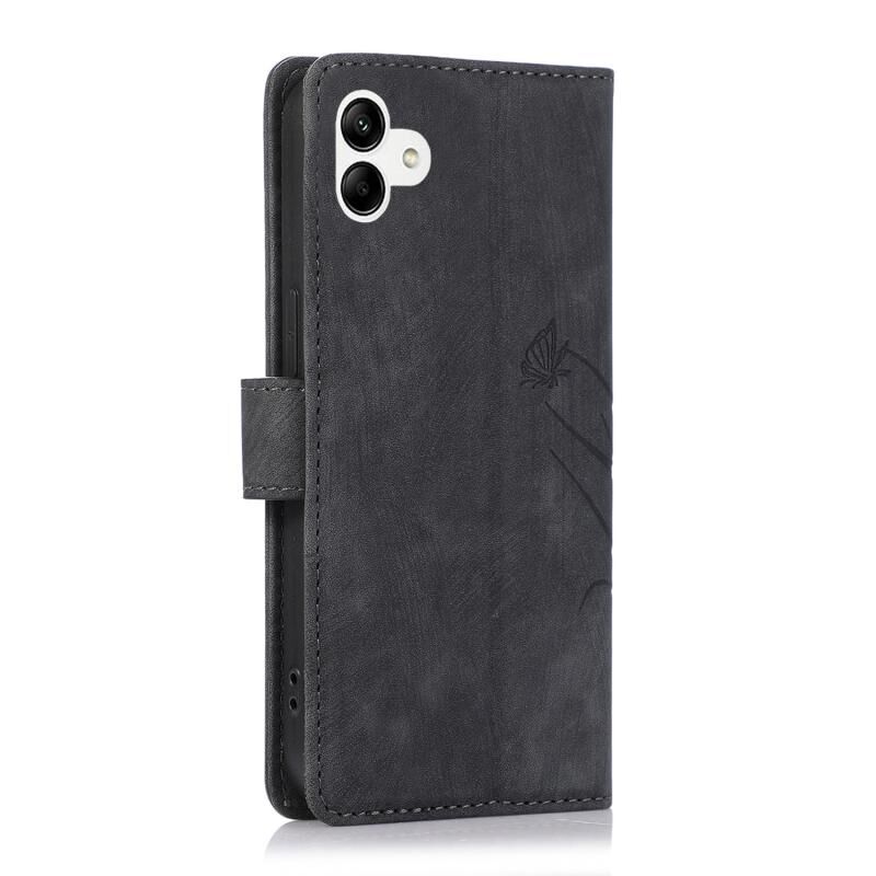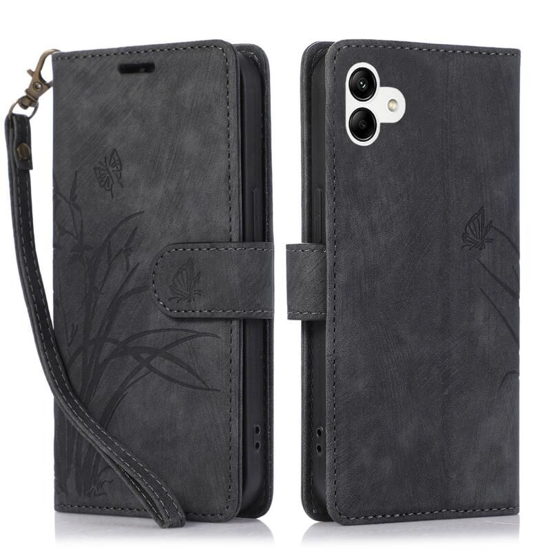 Θήκη τηλεφώνου δερμάτινη ανάγλυφη με σχέδιο ορχιδέας πεταλούδας για Samsung Galaxy A05 4G (Μαύρο)