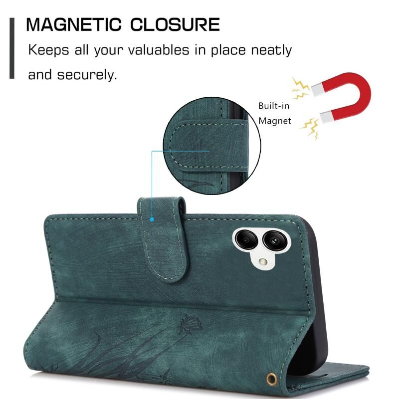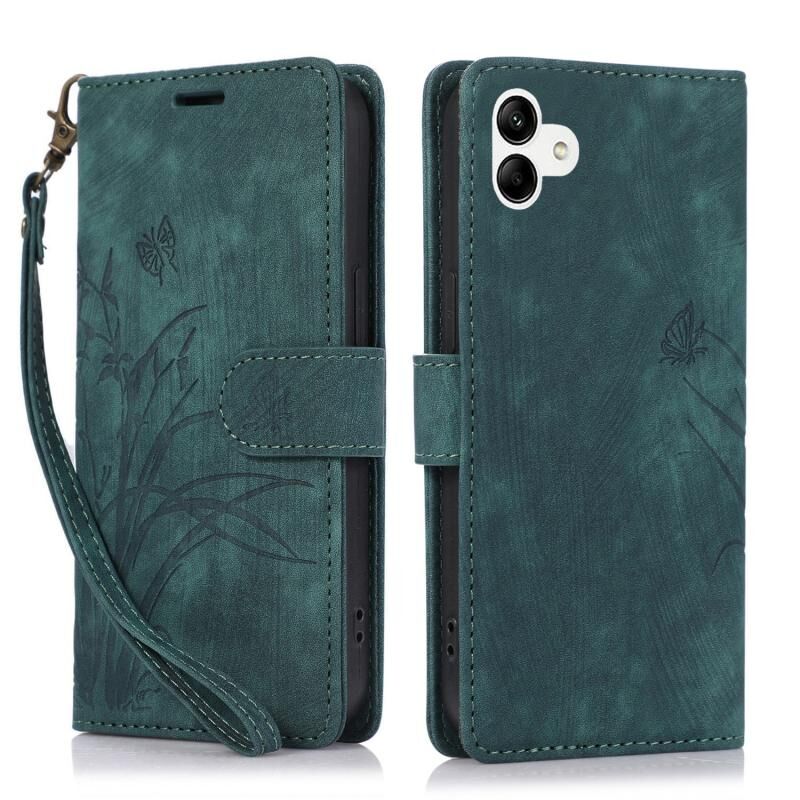 Θήκη τηλεφώνου δερμάτινη ανάγλυφη με σχέδιο ορχιδέας πεταλούδας για Samsung Galaxy A05 4G (Μαύρο)