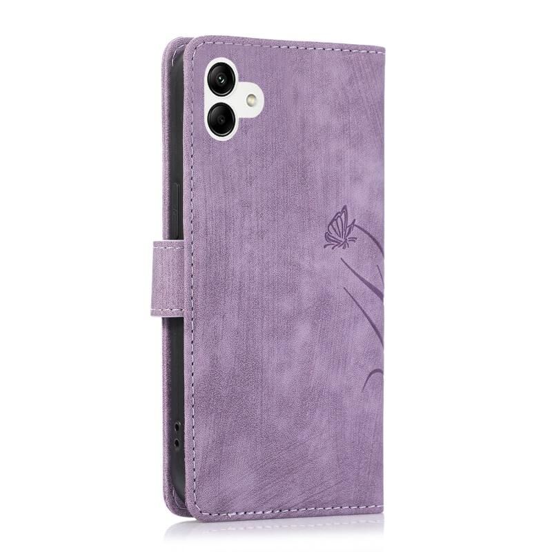 Θήκη τηλεφώνου δερμάτινη ανάγλυφη με σχέδιο ορχιδέας πεταλούδας για Samsung Galaxy A05 4G (Μαύρο)