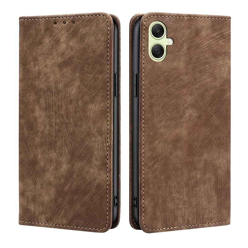 Για Samsung Galaxy A05 4G RFID Anti-theft Μαγνητική θήκη τηλεφώνου με δερμάτινη βούρτσα (Καφέ)