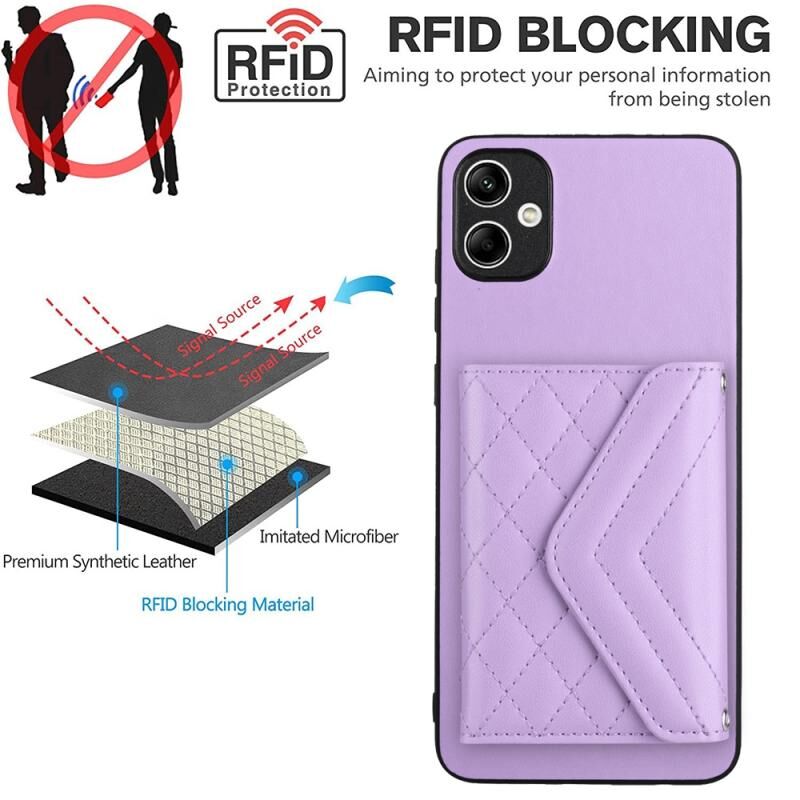 Για Samsung Galaxy A05 4G Rhombic υφή κάρτα τσάντα RFID υπόθεση τηλεφώνου με μακρύ κορδόνι (Light Purple)
