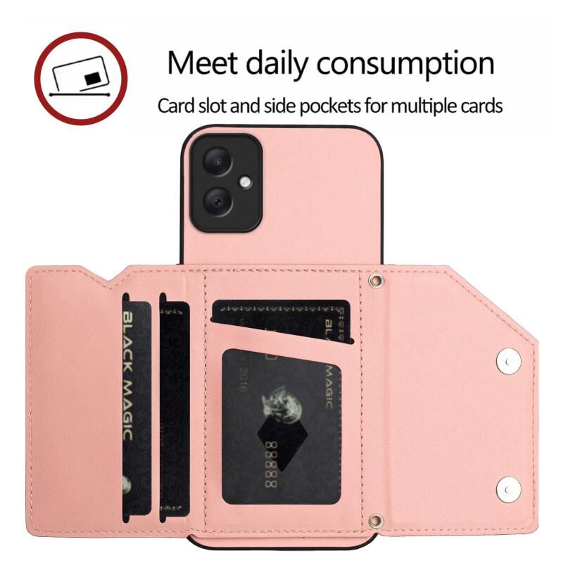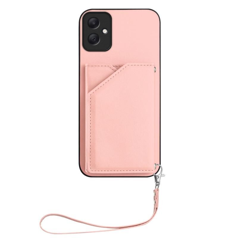 Για Samsung Galaxy A05 4G δέρμα αίσθηση τέσσερις υποδοχές κάρτα τηλέφωνο υπόθεση με λουράκι καρπού (ροζ)