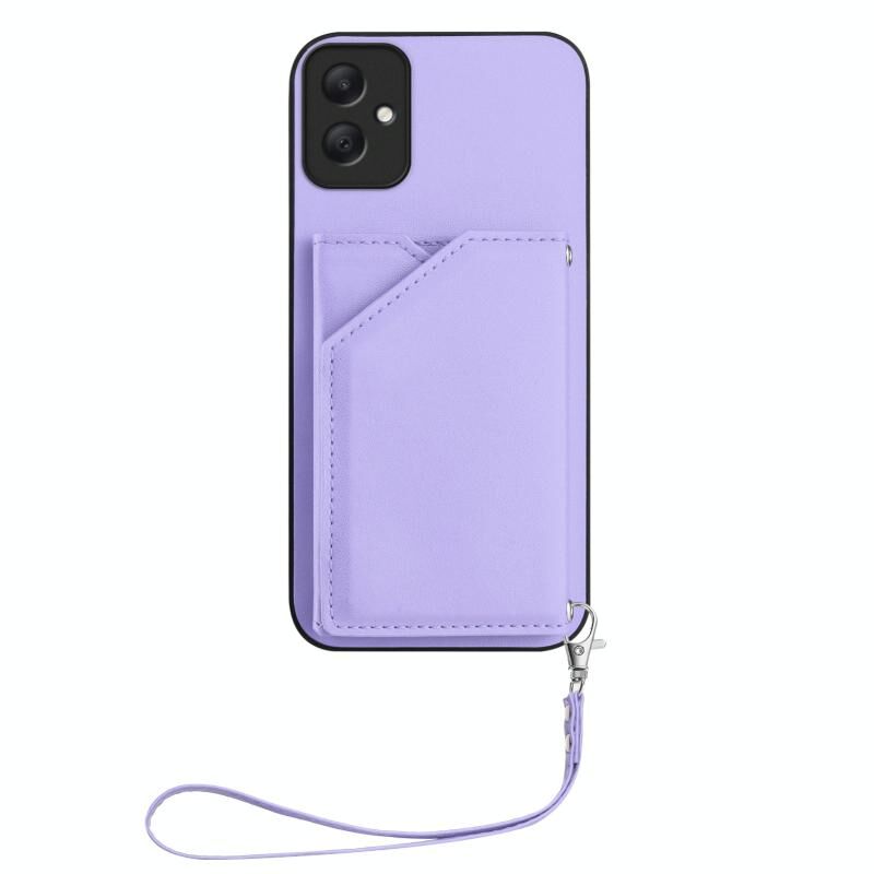 Για Samsung Galaxy A05 4G δέρμα αίσθηση τέσσερις υποδοχές κάρτα υπόθεση τηλεφώνου με λουράκι καρπού (μωβ)