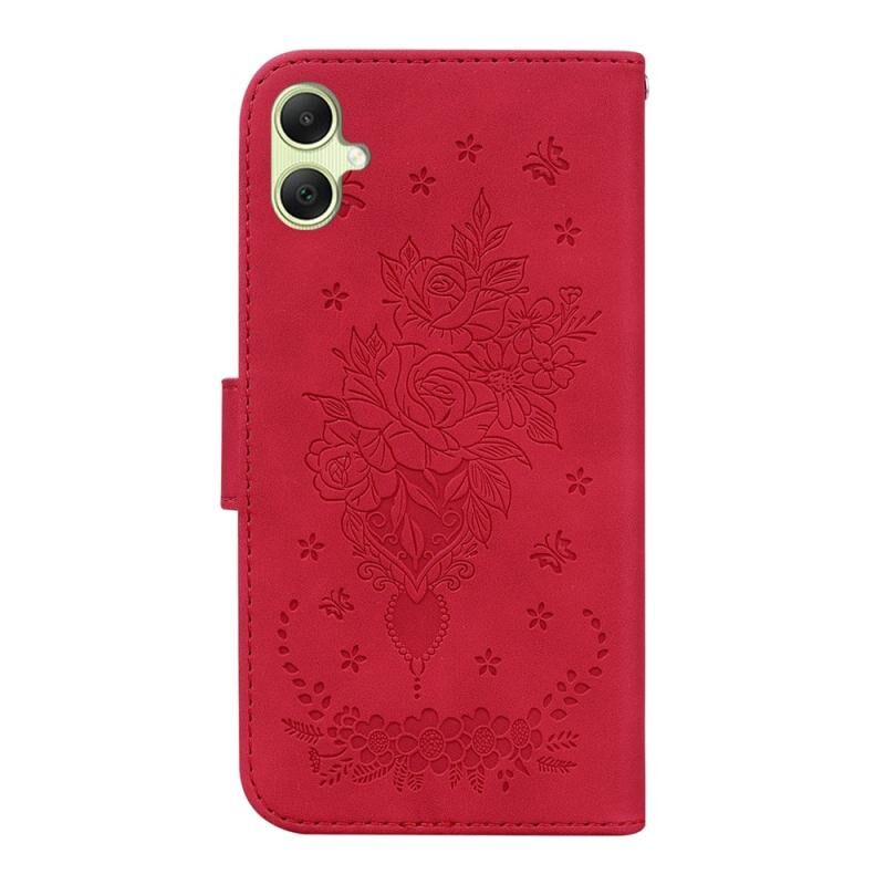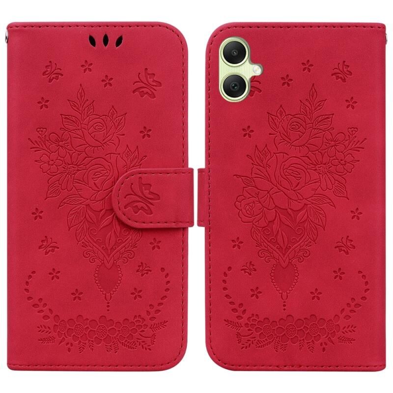 Για Samsung Galaxy A05 Πεταλούδα Rose ανάγλυφη δερμάτινη θήκη τηλεφώνου (κόκκινο)