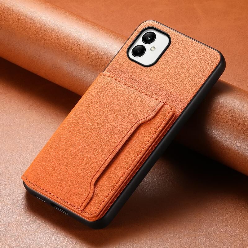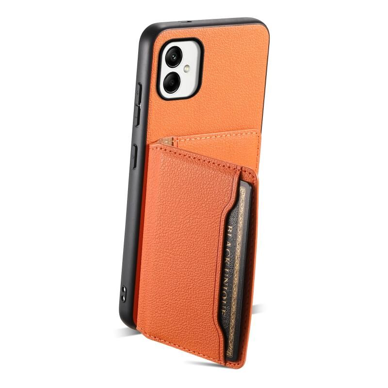 Θήκη κινητού τηλεφώνου Samsung Galaxy A05 με υφή μοσχαρίσιου δέρματος, σχέδιο κάρτας, πλήρης κάλυψη (Πορτοκαλί)