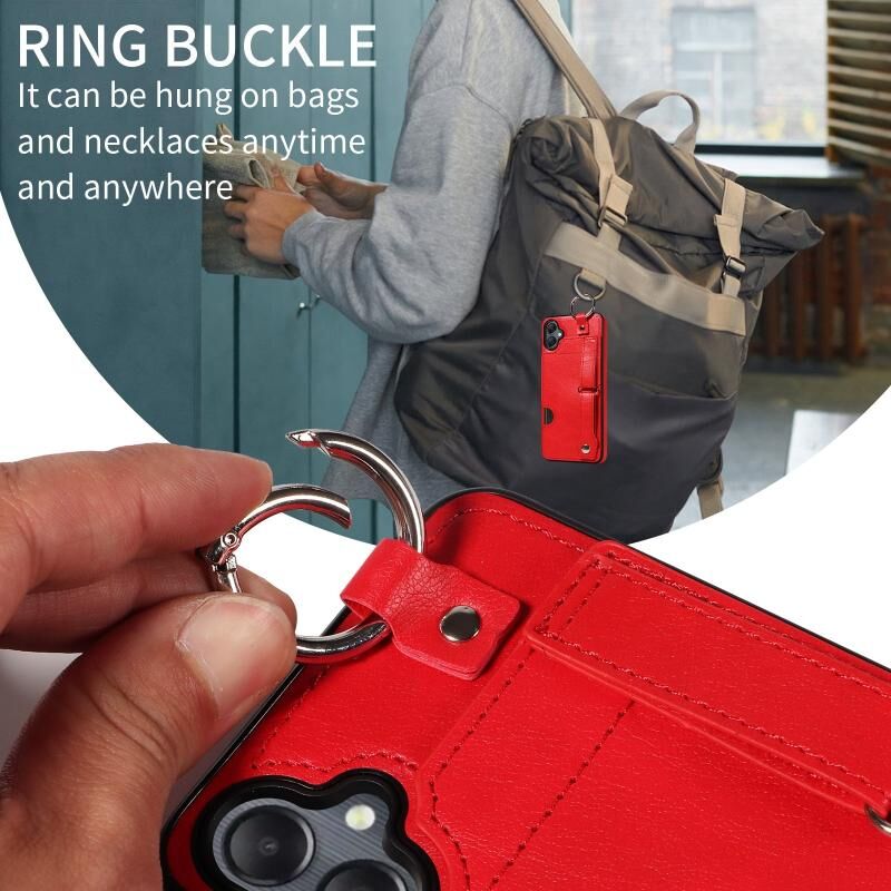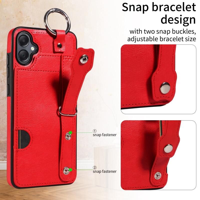 Για Samsung Galaxy A05 Calf υφή καρπού κάρτα Slot Ring υπόθεση τηλεφώνου (Κόκκινο)