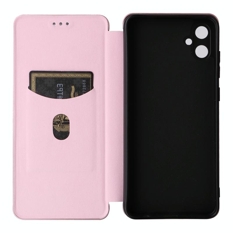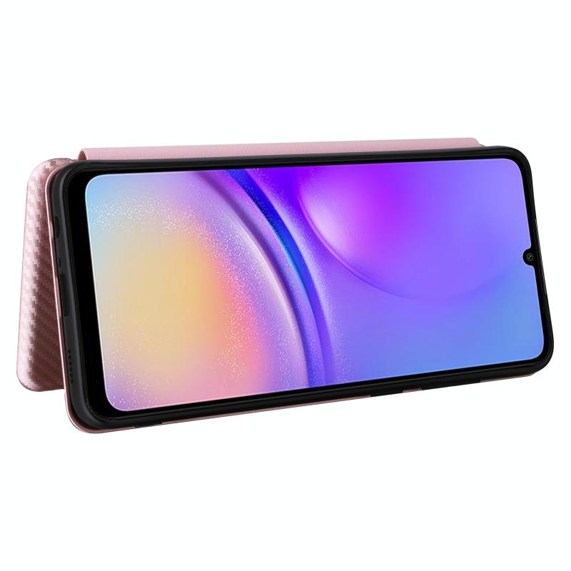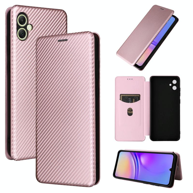 Θήκη τηλεφώνου Samsung Galaxy A05 από δέρμα με υφή ανθρακονημάτων (ρόζ)