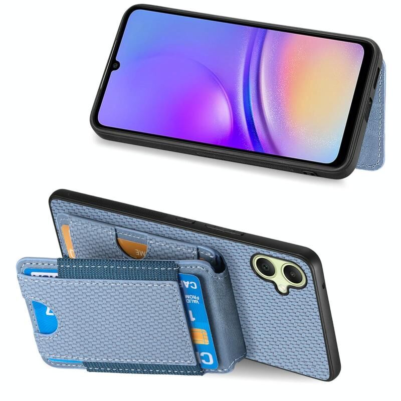 Για Samsung Galaxy A05 Carbon Fiber Κάθετη Flip Wallet Stand υπόθεση τηλεφώνου (Μπλε)
