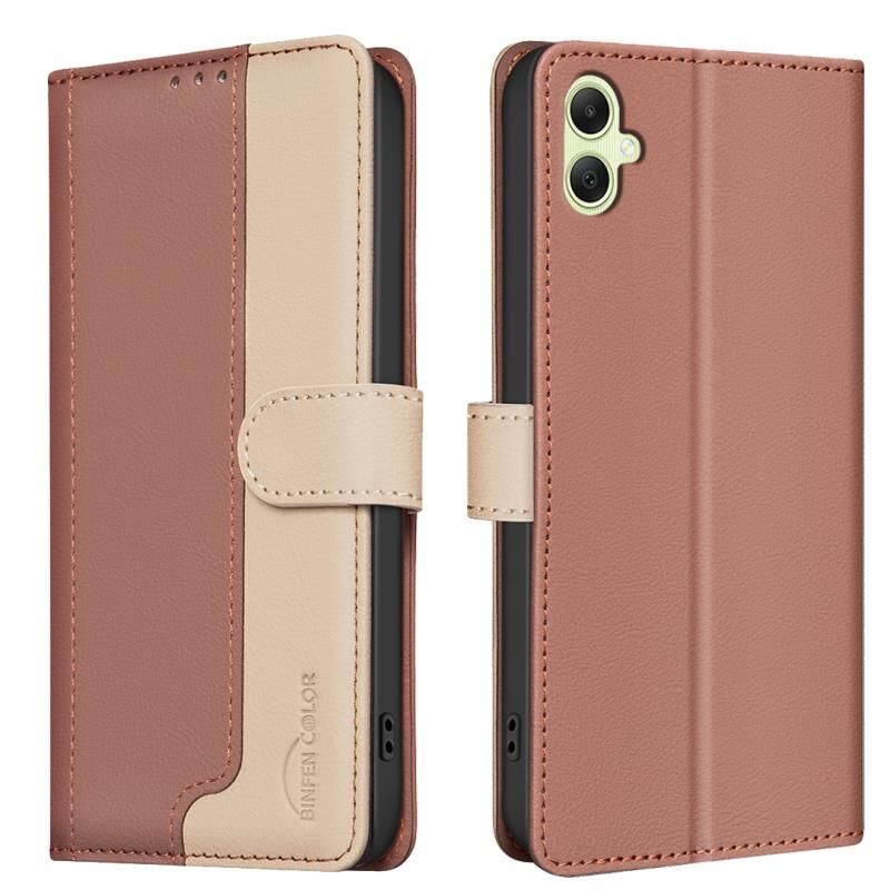 Θήκη τηλεφώνου δερμάτινη με τεχνολογία RFID κατά της κλοπής και αντιστοίχιση χρώματος για Samsung Galaxy A05 (Καφέ)