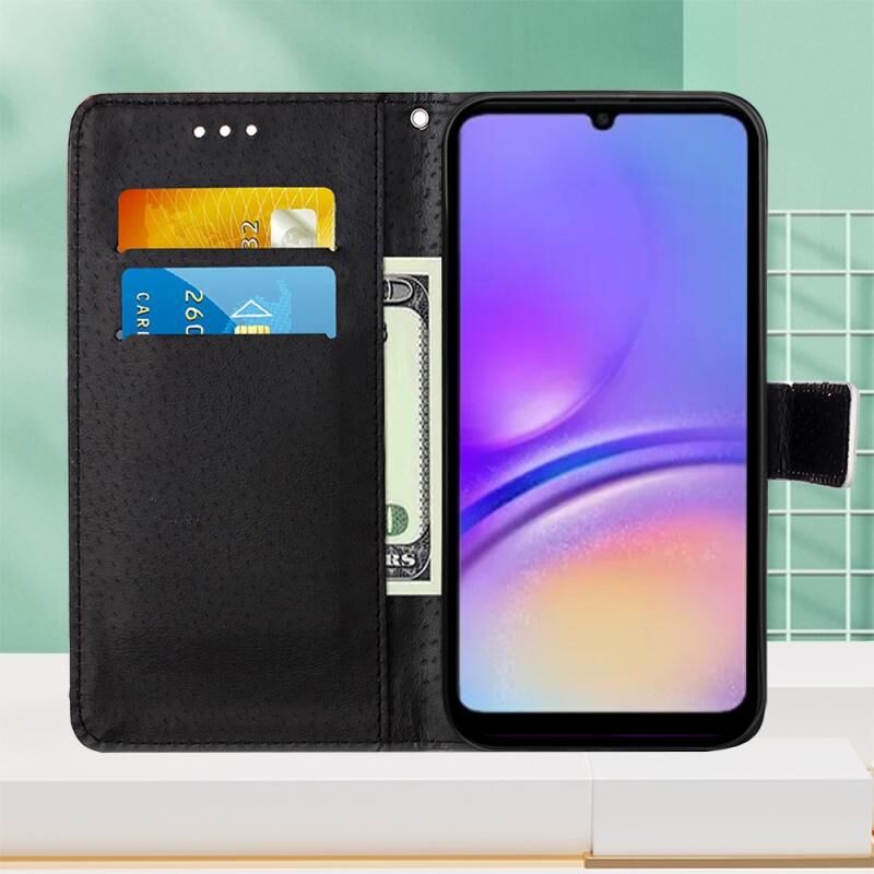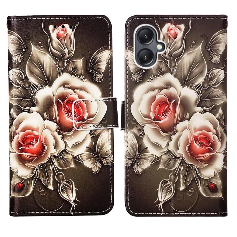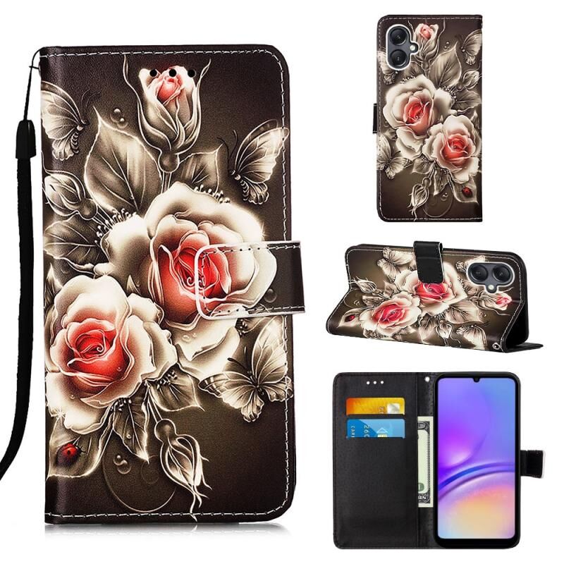 Θήκη τηλεφώνου Samsung Galaxy A05 από δέρμα με απλή ύφανση, με πολύχρωμο σχέδιο ζωγραφικής (Τίγρης σε ασπρόμαυρο). (Τριαντάφυλλα σε μαύρο)