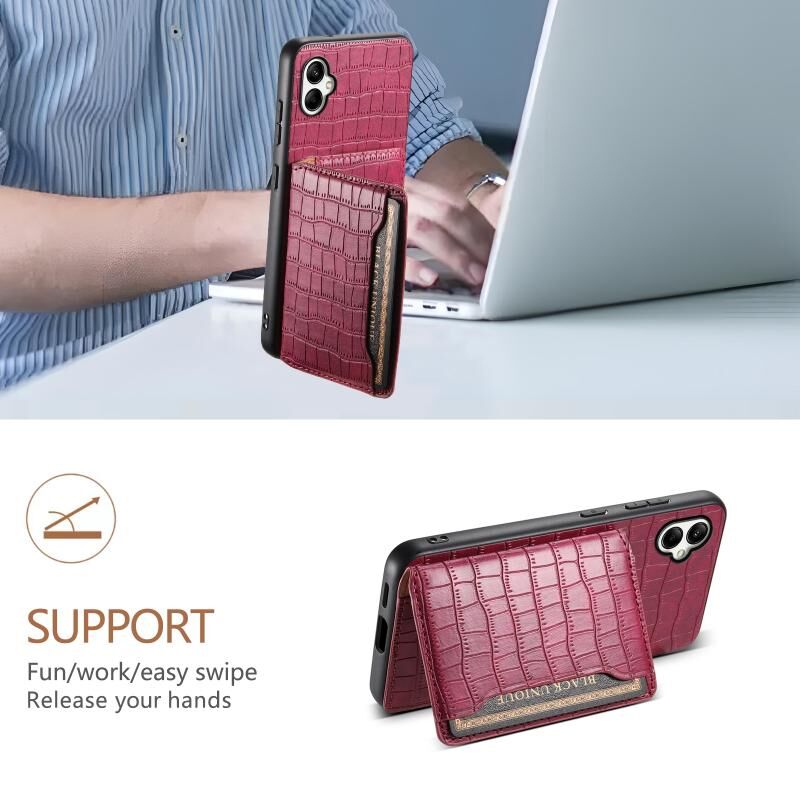 Θήκη κινητού τηλεφώνου Samsung Galaxy A05 με υφή κροκόδειλου και σχέδιο θήκης καρτών, πλήρης κάλυψη (Καφέ)
