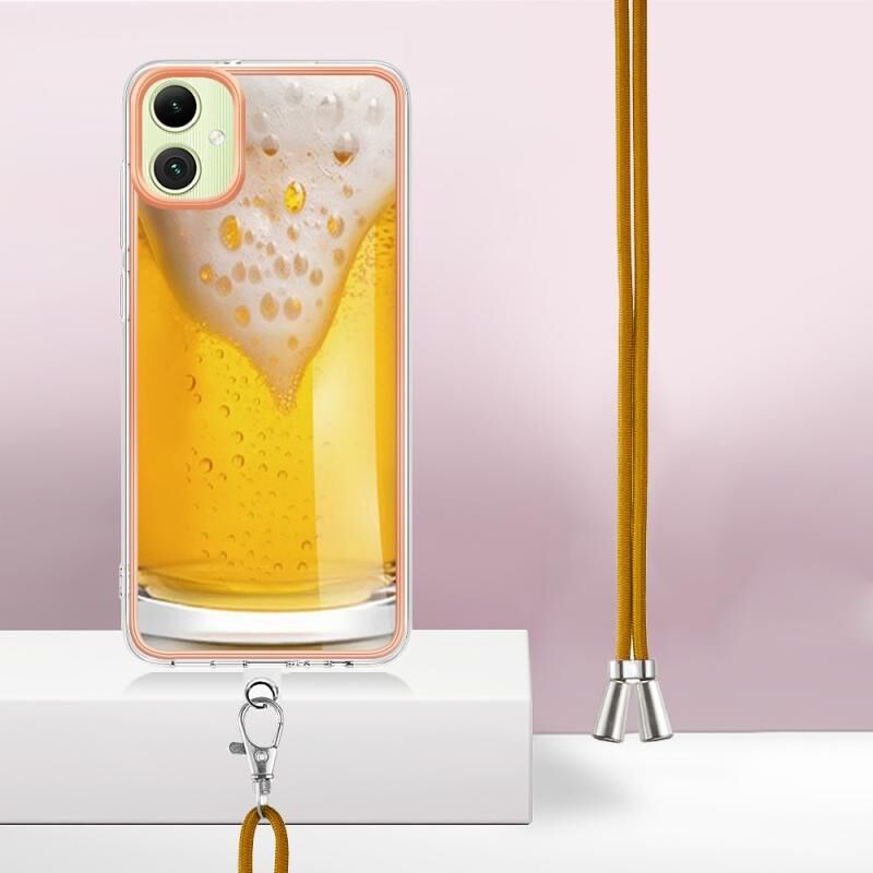 For Samsung Galaxy A05 Electroplating Dual-side IMD Phone Case with Lanyard(Draft Beer)