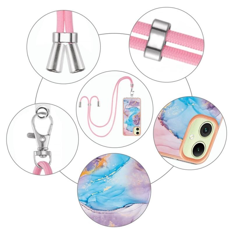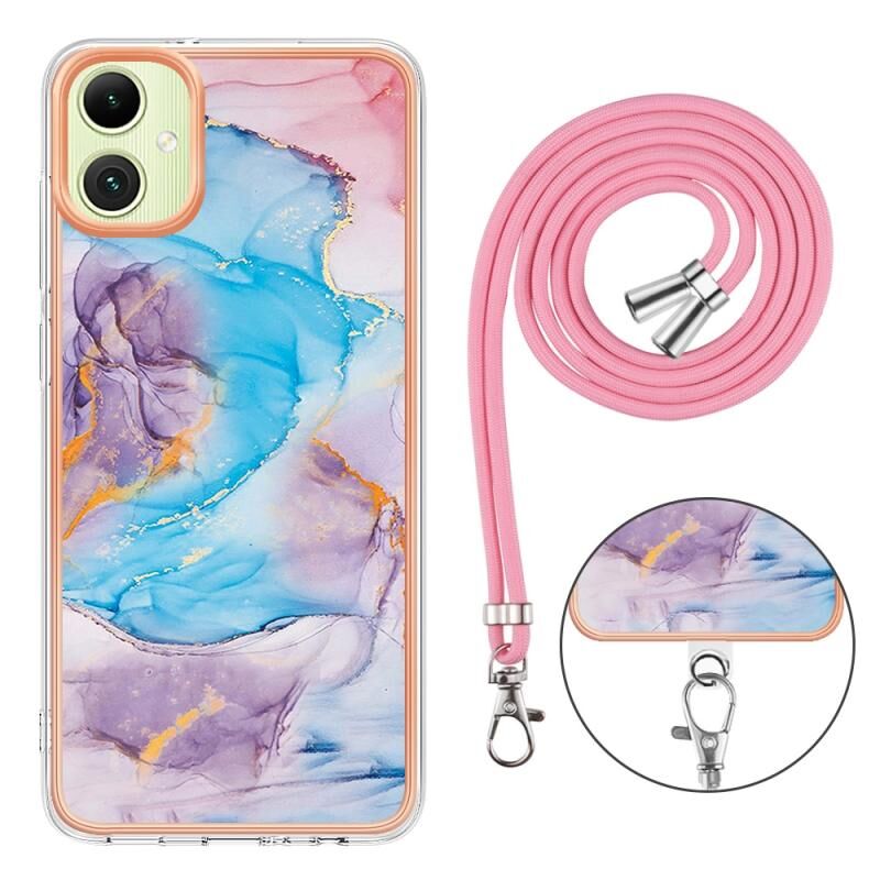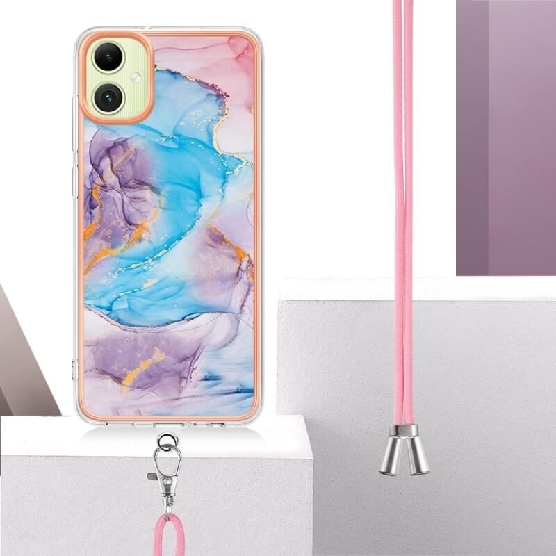 Θήκη κινητού τηλεφώνου Samsung Galaxy A05 με επιμετάλλωση IMD TPU και κορδόνι (Μπλε Μάρμαρο)