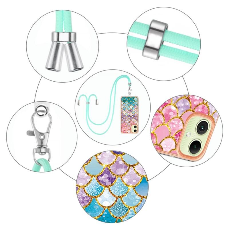 Θήκη τηλεφώνου Samsung Galaxy A05 με επιμετάλλωση IMD TPU με κορδόνι (Πολύχρωμες Λέπια)