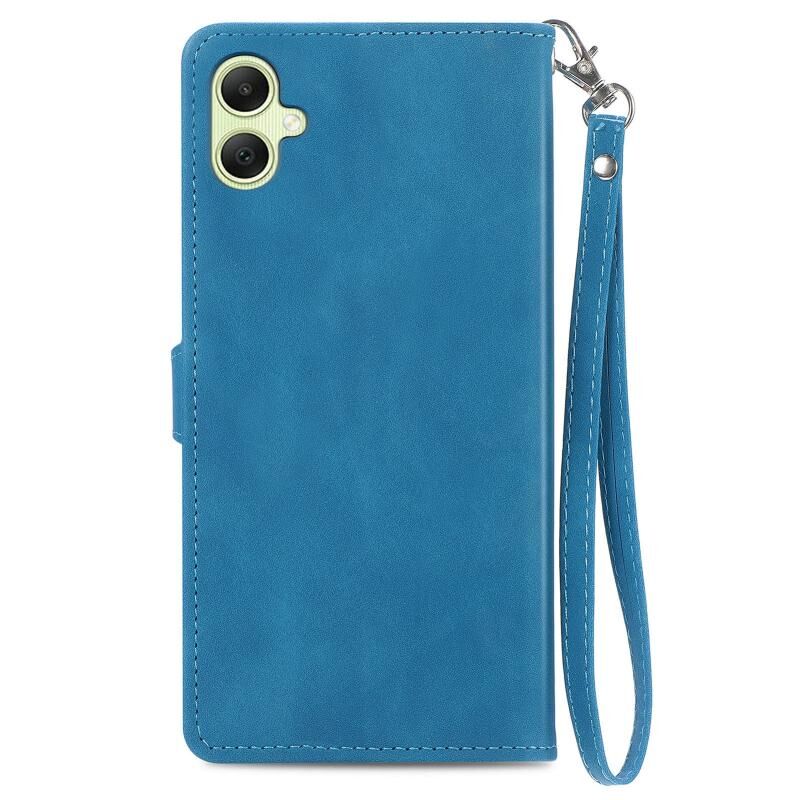 Για Samsung Galaxy A05 ανάγλυφο λουλούδι φερμουάρ δερμάτινη θήκη τηλεφώνου (μπλε)