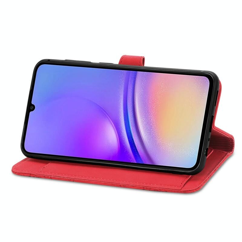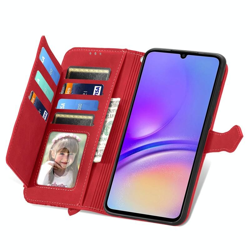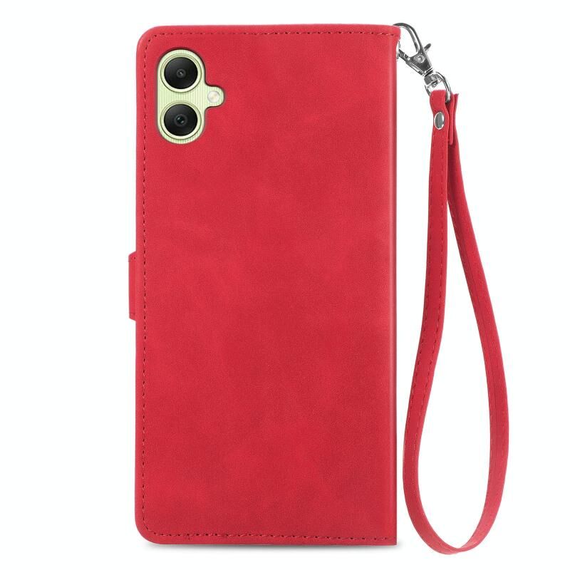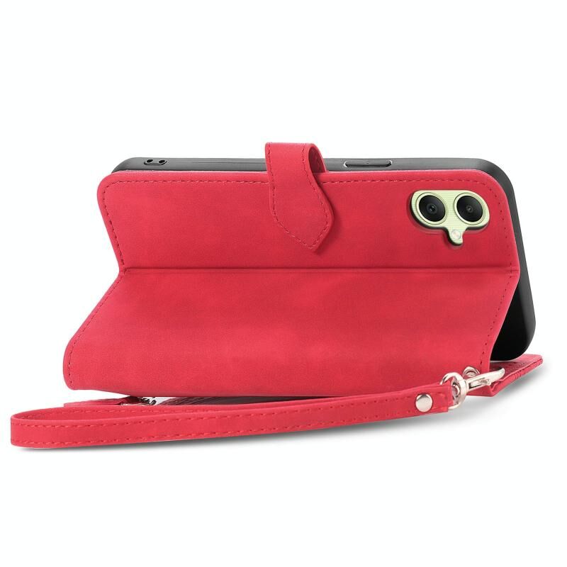 Για Samsung Galaxy A05 ανάγλυφο λουλούδι φερμουάρ δερμάτινη θήκη τηλεφώνου (κόκκινο)
