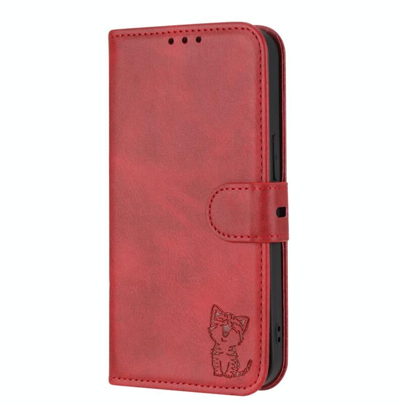 Για το Samsung Galaxy A05 ανάγλυφο Happy Cat μοτίβο Flip δερμάτινη θήκη τηλεφώνου (κόκκινο)