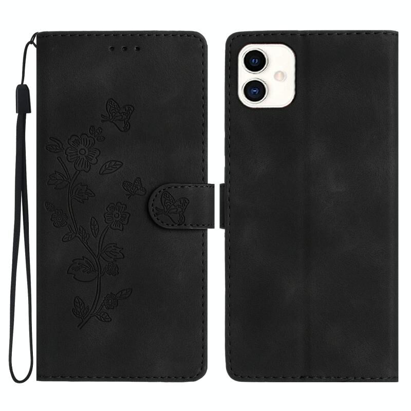 Για Samsung Galaxy A05 λουλούδι πεταλούδα ανάγλυφο μοτίβο δερμάτινη θήκη τηλεφώνου (μαύρο)
