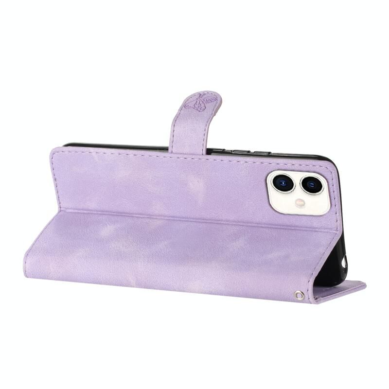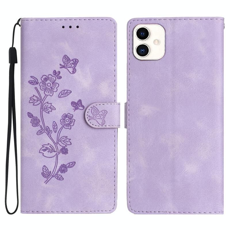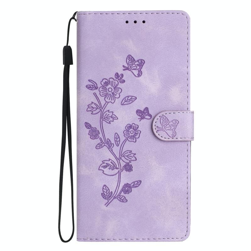 Για Samsung Galaxy A05 λουλούδι πεταλούδα ανάγλυφο μοτίβο δερμάτινη θήκη τηλεφώνου (μωβ)